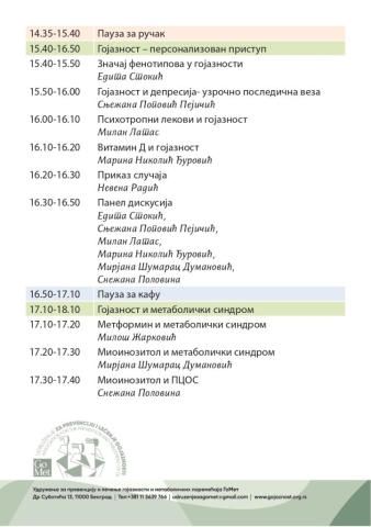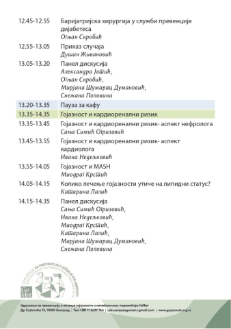 СИМПОЗИЈУМ „ГОЈАЗНОСТ, МЕТАБОЛИЧКИ СИНДРОМ И ПРЕДИЈАБЕТЕС” – ПРОГРАМ
